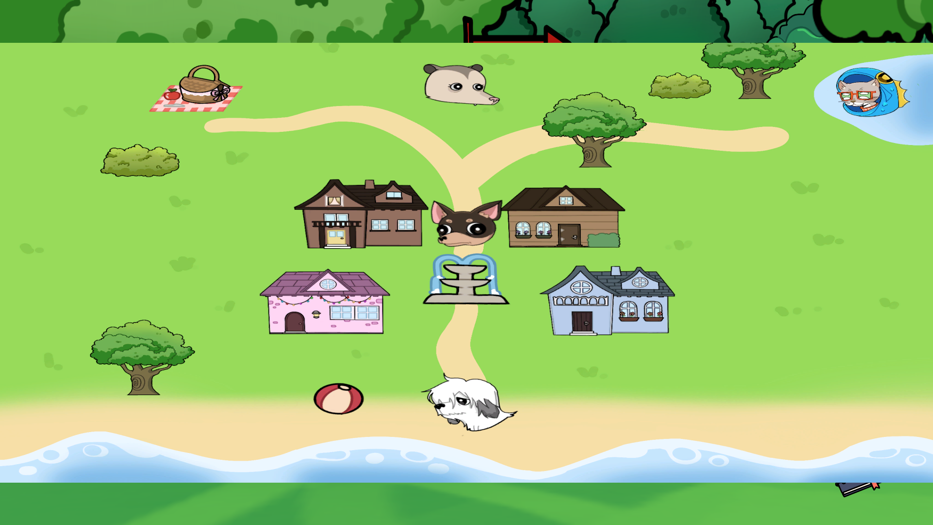 Holla, es muy distraïdo. Y también muy hogareño. No se acuerda cuál es su casa. Entra en las diferentes casas del pueblo y averigua cuál es el rostro de cada inquilino. Muéstraselos a Holla, ¡a ver si así sabe cuál es su casa!